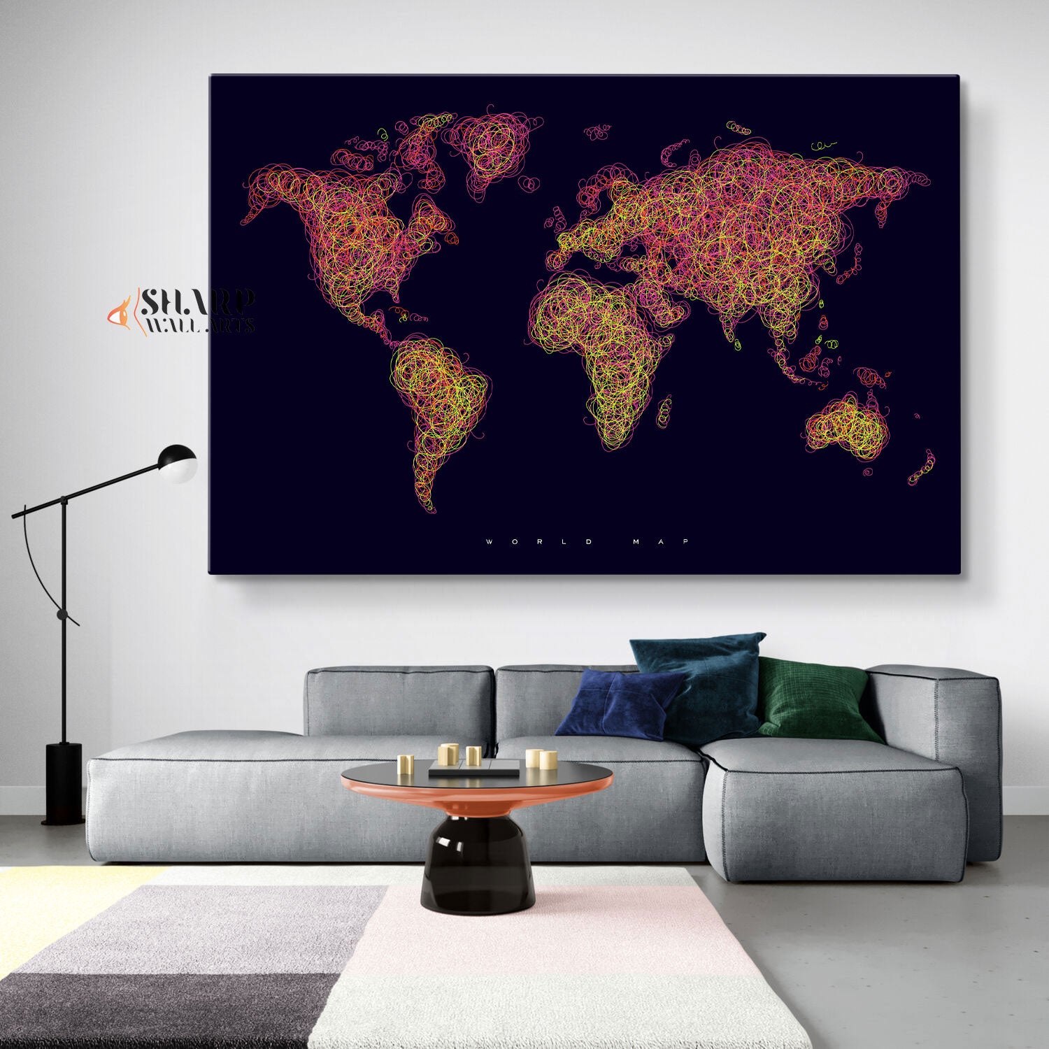 World Map Abstract Painting World Map Wall Art โ SharpWallArts