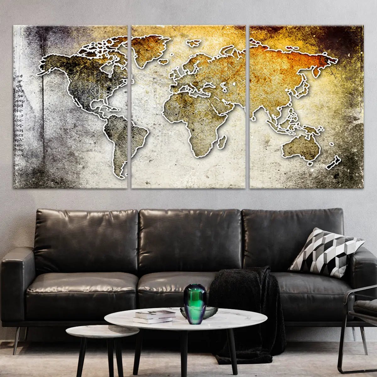 Modern Abstract World Map Wall Art Multi Panel Canvas | Stunning