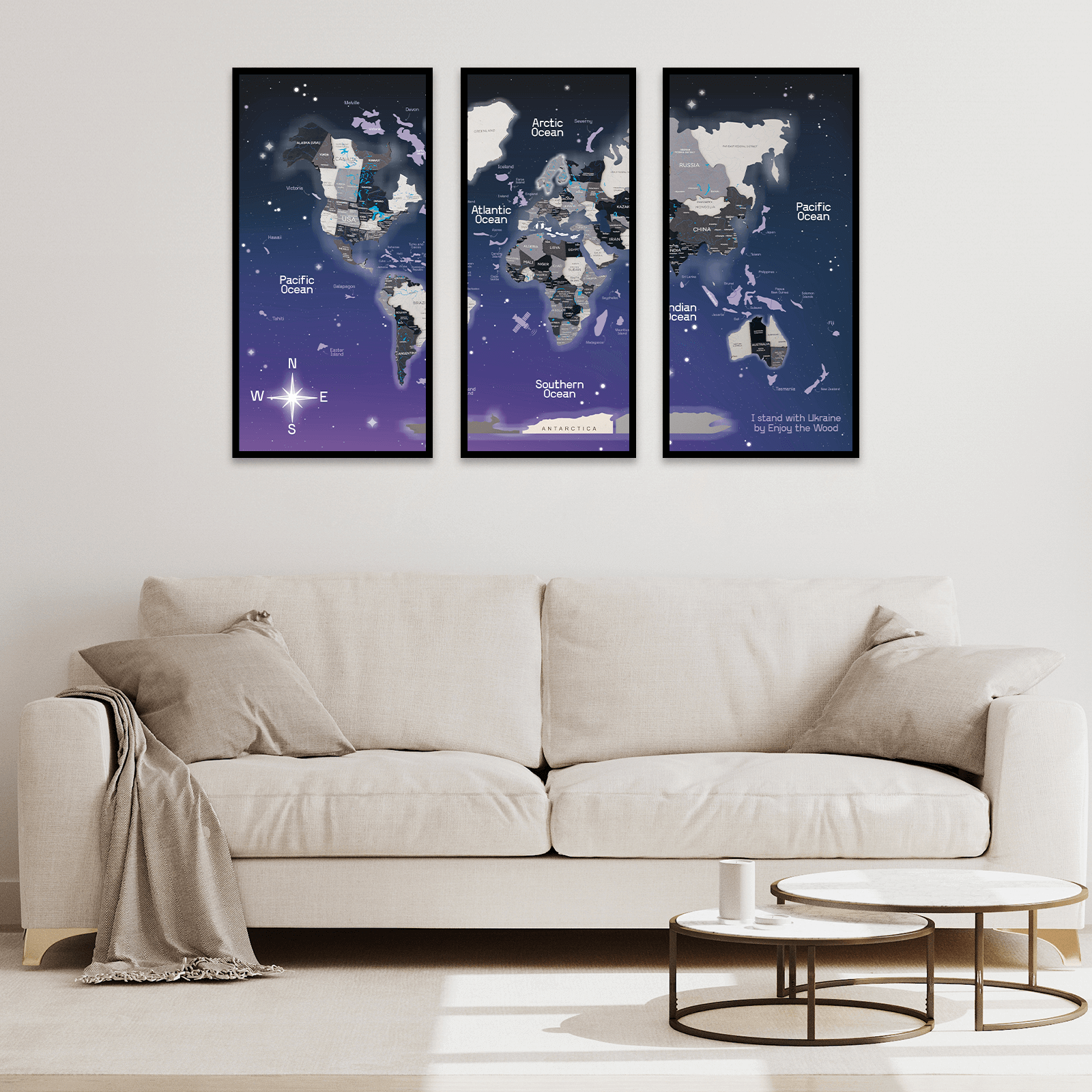 Modern World Map Wall Art Multi Panel Canvas | Stunning Canvas Prints