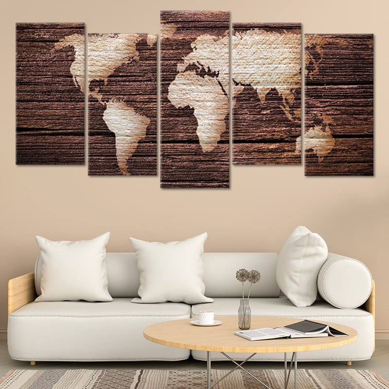 Burnt Wood World Map Canvas Wall Art Set l Stunning Canvas Prints