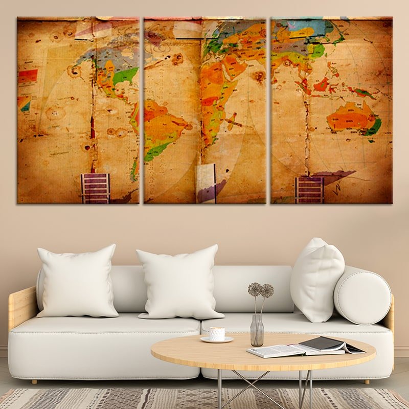 Large World Map Wall Art Print Map on Canvas Gallery Wall Set of