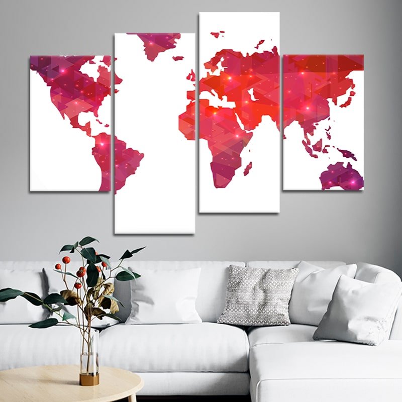 Red World Map Canvas Wall Art Set l Stunning Canvas Prints